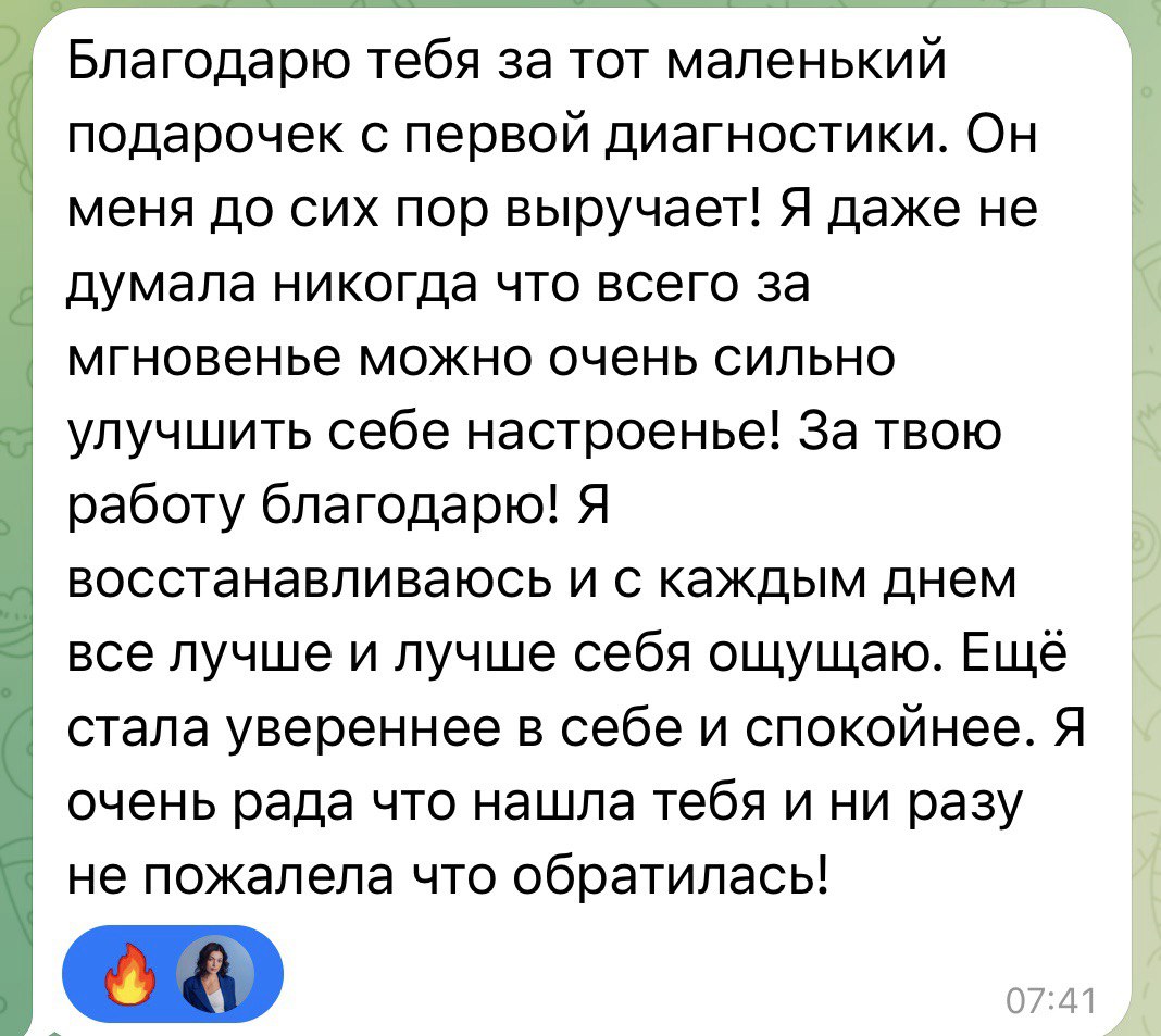 Помимо состояния здоровья проработаем ваши негативные убеждения, которые напрямую влияют на прогресс сбоя, и в целом на весь организм.